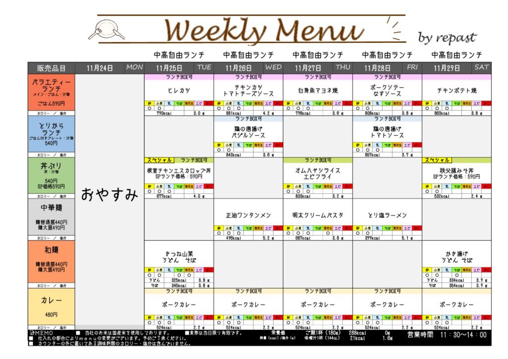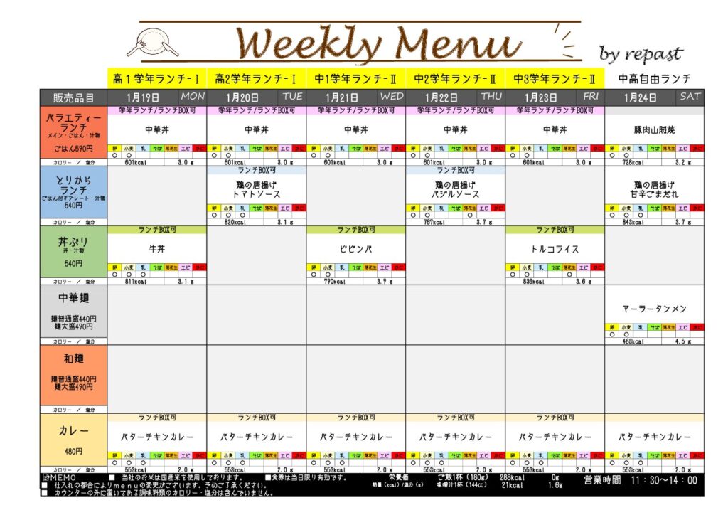 カフェテリアでの週替わりのランチメニューを紹介します。