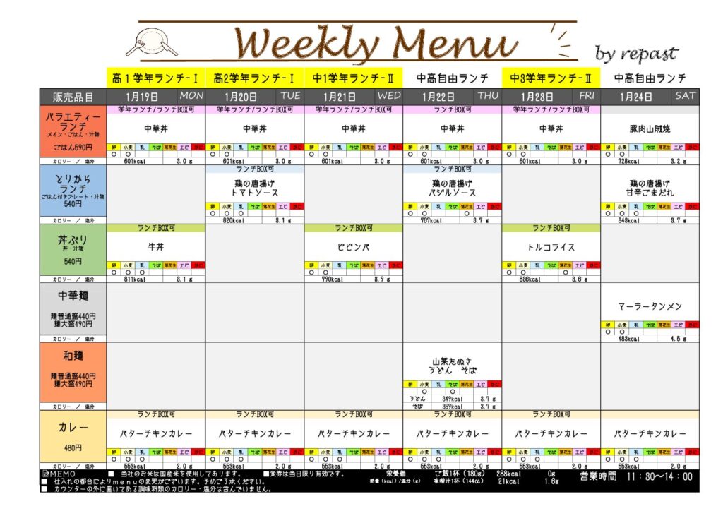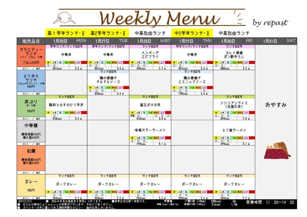 カフェテリアでの週替わりのランチメニューを紹介します。