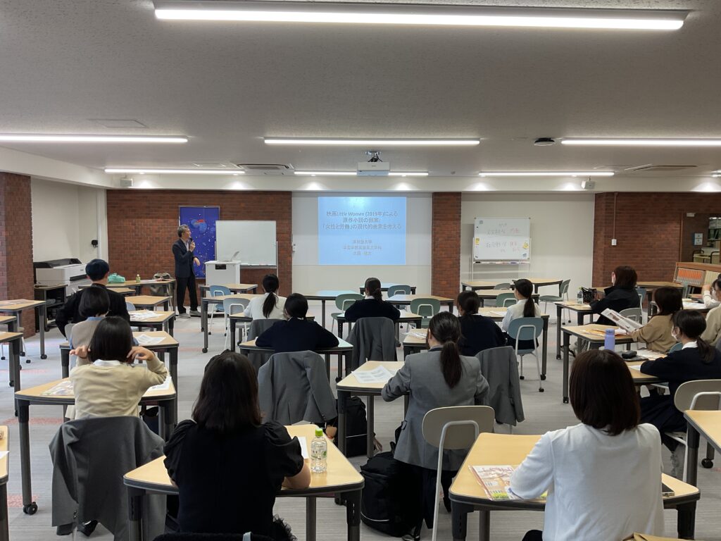 今回の出張講義では、G.ガーウィグ監督による 2019 年発表の映画『Little Women』を読み解くことで、現代における「女性とキャリア」をめぐるテーマがどのように作品に投影されているか、また、文学作品や映像作品を通して私たち自身の生き方についてどのように捉えることができるかについて考えました。