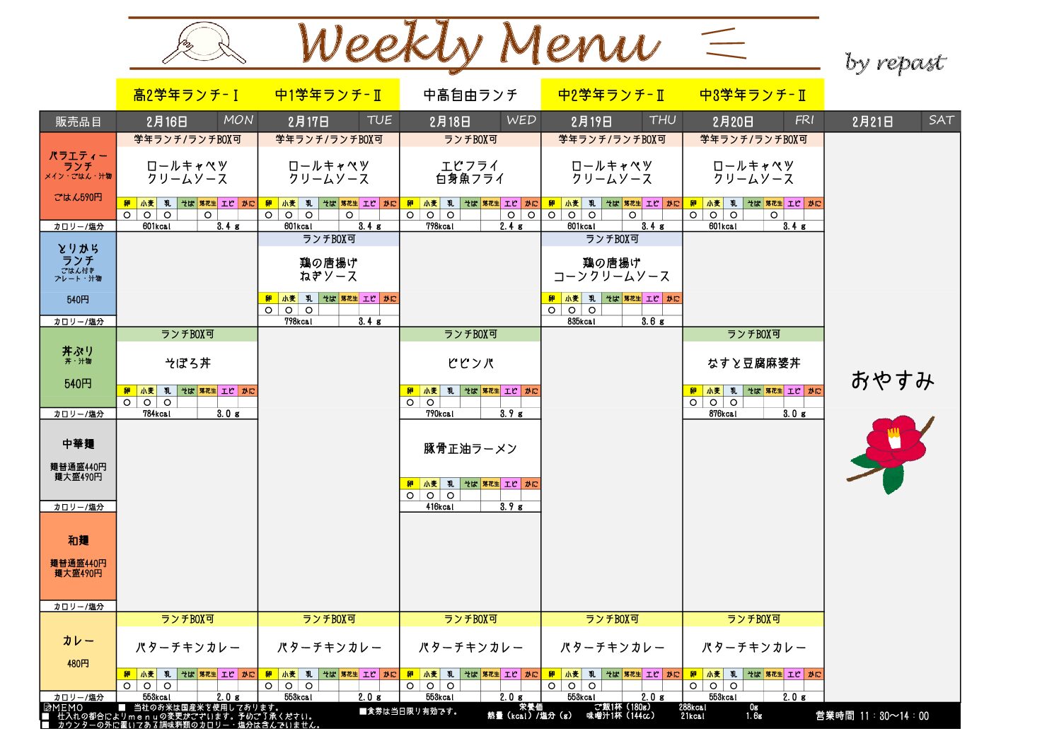 カフェテリアでの週替わりのランチメニューを紹介します。