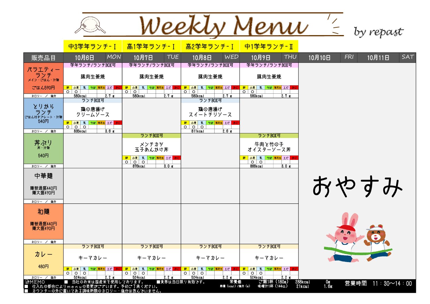 カフェテリアでの週替わりのランチメニューを紹介します。