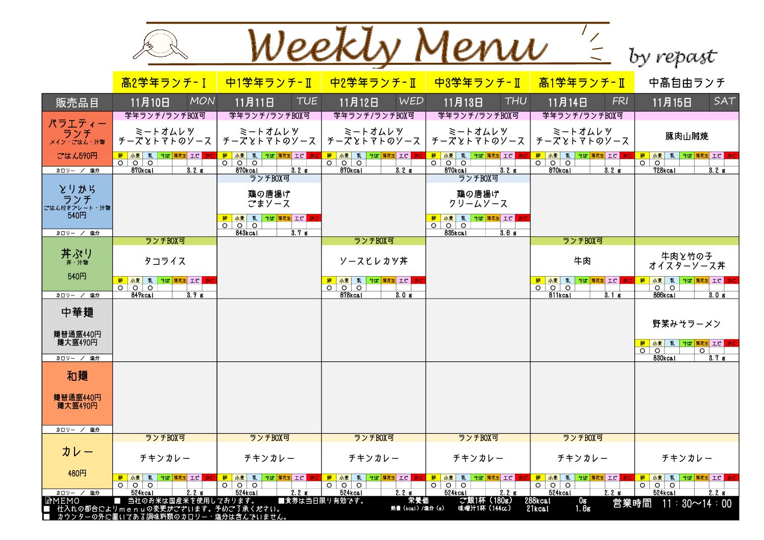 カフェテリアでの週替わりのランチメニューを紹介します。