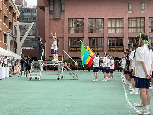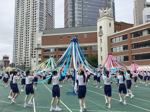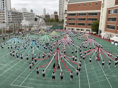 体育祭のオープニングを飾るプログラムは、中学3年生によるメイポールダンス。