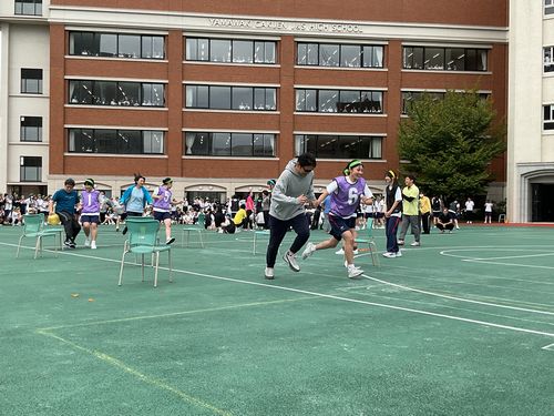 続いて高校3年生の個人競技、「先生と走ろう」。お世話になった先生とゴールを目指して駆け抜けました。