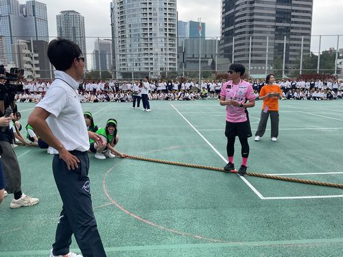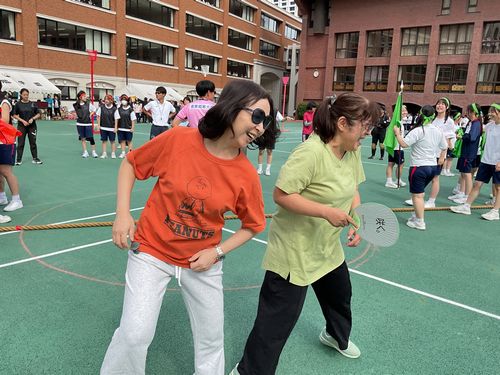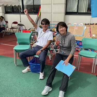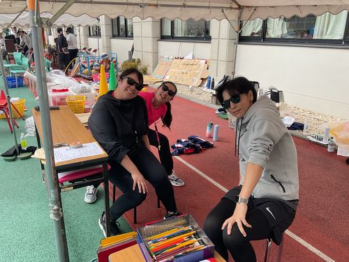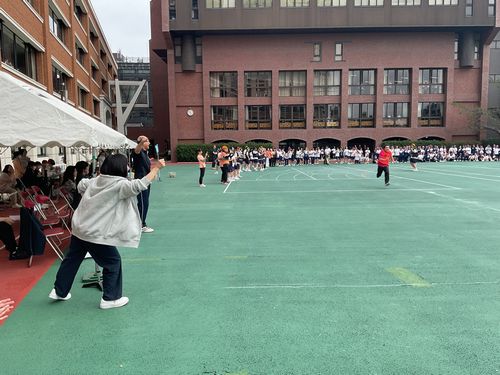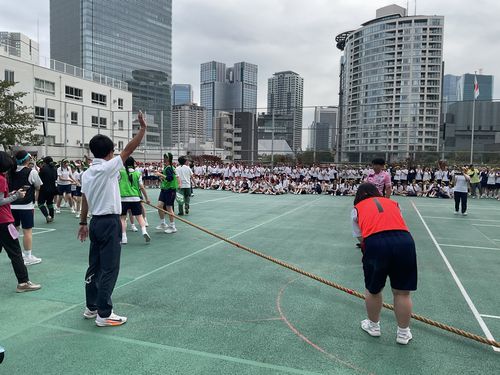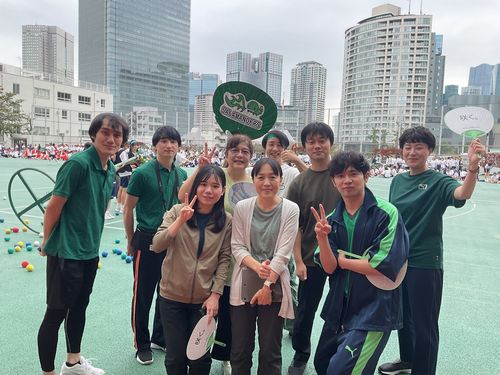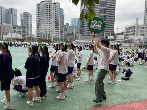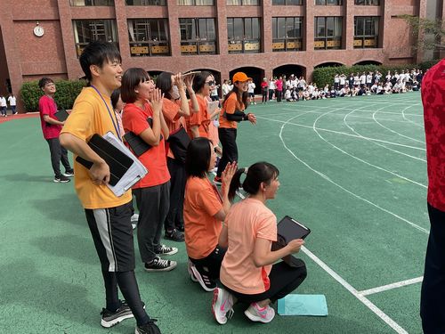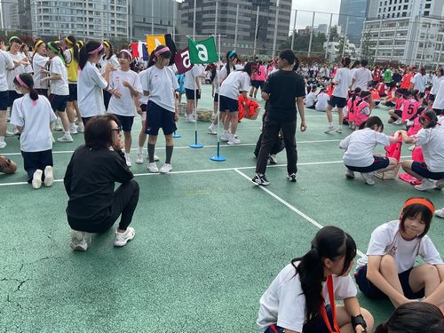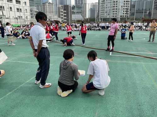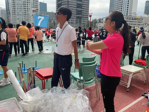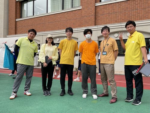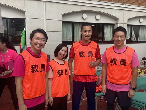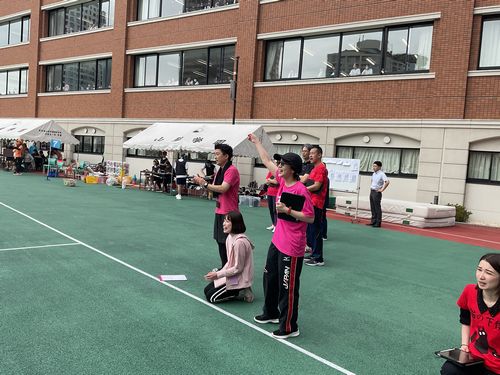 体育祭では、多くの教員が学年カラーやクラスカラーのものを身にまとって参加します。