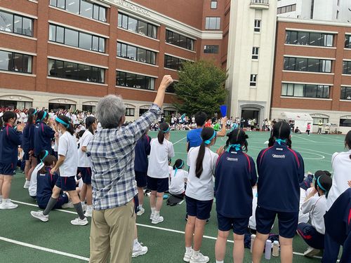 退職された保健体育科の大先輩の先生も来校され、生徒や教職員の姿を見守ってくださいました。声を枯らして応援する教職員の様子に「山脇らしさ」を感じたという感想とあわせて、在職中によくお話しくださった「体育が良ければすべてよし」という格言もいただきました。
