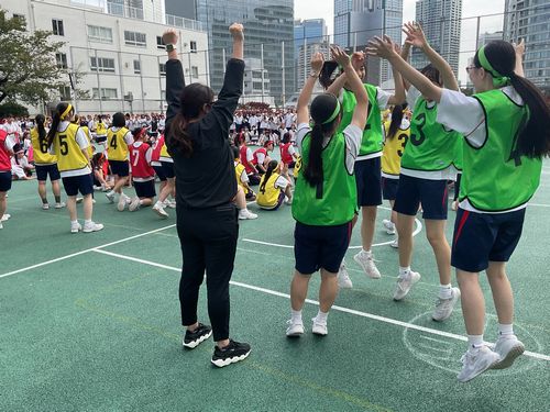 1学期から体育実技やダンスの授業を通して、競技や演舞の指導に取り組みました。また、体育祭の実施に向けては、実行委員や係の生徒を見守りながら支援し、ともに体育祭を創り上げました。