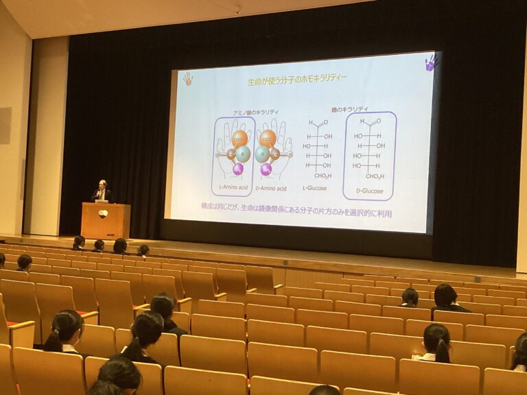 笹部先生が医学部を目指した動機や、「医師として何ができるか?」を追究し、研究をしながら診療を行う現在のスタイルになった経緯、研究内容であるアミノ酸のキラリティーについて、お話いただきました。
