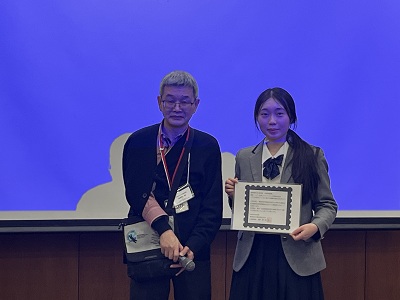北海道札幌市北区の北海道大学農学部で令和8年度日本蚕糸学会(蚕糸・昆虫機能利用学術講演会)が開催されました。高校生は群馬県の樹徳高等学校と本校のサイエンスコースの生徒が口頭発表を行いました。一般の発表はDNAを扱った最先端の発表が多いなか、カイコの生態についての不思議を扱う『ノゲシを使ったカイコの人工飼料の作成』という研究の発表には興味を持たれ非常に多くの質問をしていただきました。発表後大会事務局長さんからは学会で口頭発表を行った認定証をいただきました。