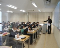 学年全員で山脇ホールに集まり、合同ホームルームを行いました。