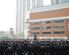 それぞれの代表生徒が互いに挨拶を述べ、拍手を送り合いました。