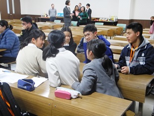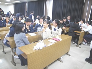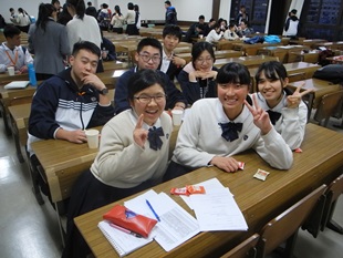 本校生徒も視察団の生徒も最初は緊張していましたが、英語、日本語、中国語、最後は身振り手振りで意思疎通が取れるようになると、あっという間に打ち解け、楽しい時間を過ごしました。