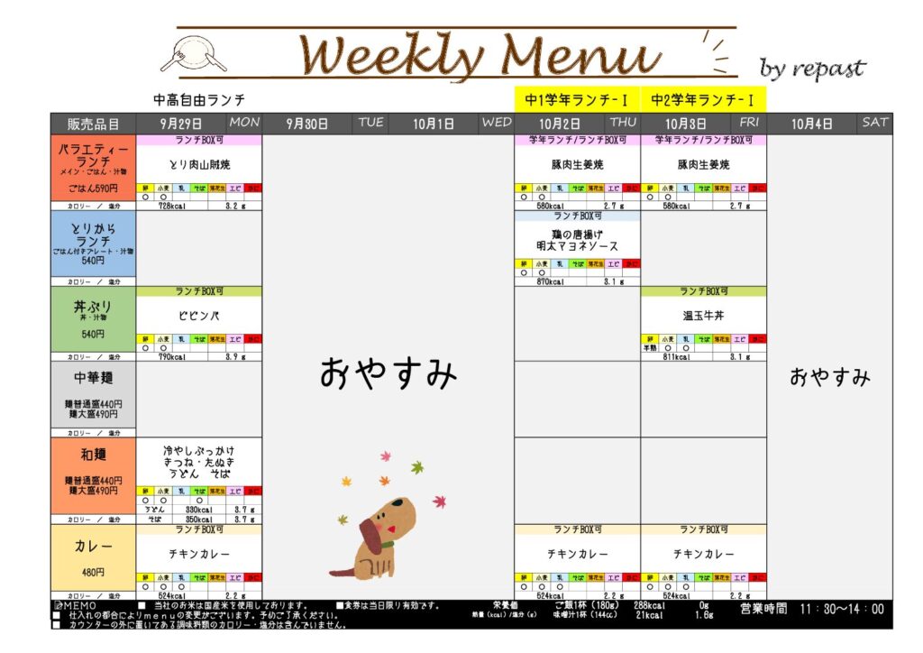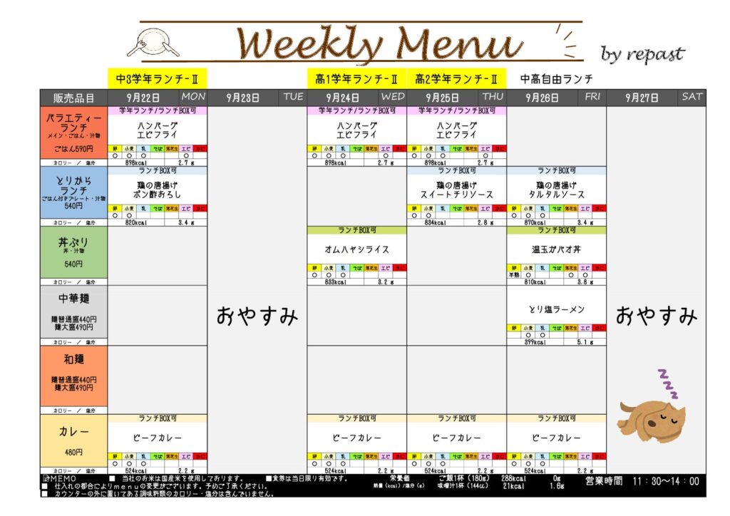 カフェテリアでの週替わりのランチメニューを紹介します。