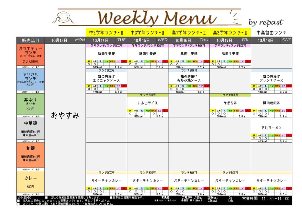 カフェテリアでの週替わりのランチメニューを紹介します。